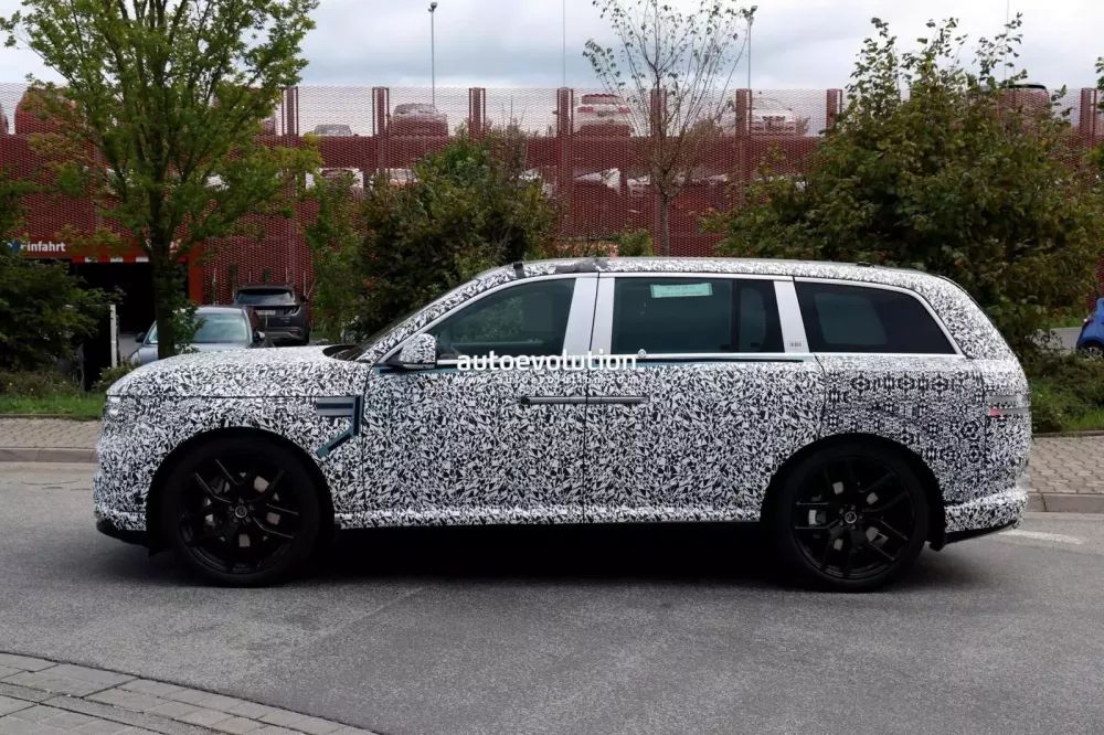 Trong bức ảnh của 1 chiếc xe Genesis GV90 2027 được ngụy trang bị chụp gần đây cho thấy, cửa khoang hành khách được mở ngược, điều này mang đến cho xe GV90 thực sự là một chiếc xe sang trọng khổng lồ không có trụ B. Ngay cả theo tiêu chuẩn của Rolls-Royce, cửa mở này cũng cực kỳ lớn. Nhìn kỹ hơn, bạn sẽ thấy bản lề cửa sau cũng to tương tự.