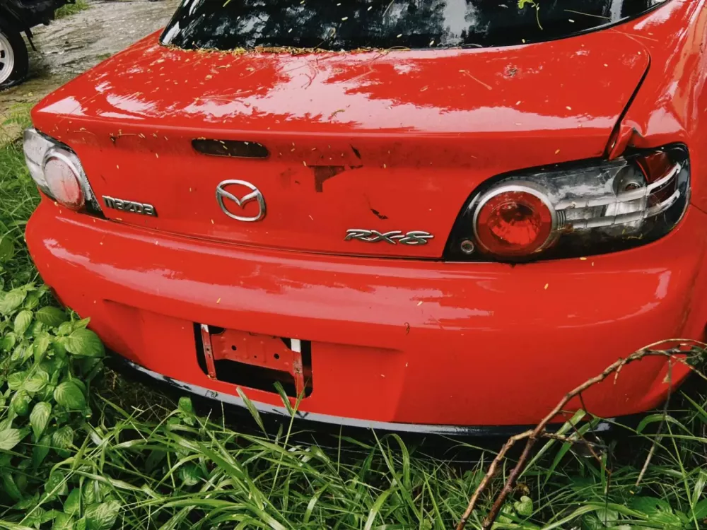 Trong đó, có 1 chiếc xe Mazda RX-8 mới bị bắt gặp với tình trạng nhìn sơ qua thì ngoại thất còn mới, nhưng xe không còn biển số, có thể đã được chủ xe tháo ra cất, và đậu ở 1 khu vực bãi đất trống, xung quanh cỏ mọc um tùm, chưa rõ vì sao số phận chiếc Mazda RX-8 này lại hẩm hiu đến thế.