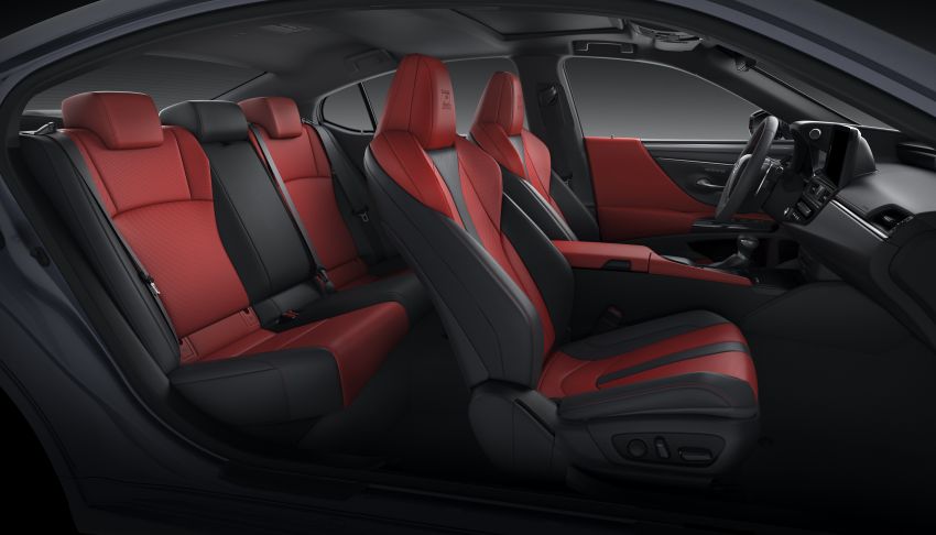 Bên trong khoang lái, Lexus mang đến cho dòng ES tùy chọn màu nội thất mới có tên gọi Hazel và Mauve, thuộc về màu nâu thiên về tông xám. Nội thất bản F Sport sẽ có màu trắng, trong khi đệm ghế màu trắng đi kèm chi tiết điểm nhấn màu đỏ, kết hợp cùng lưng ghế màu đen. Ở chi tiết ốp, người dùng có thể chọn chất liệu gỗ óc chó với hai tông màu đen hoặc nâu.