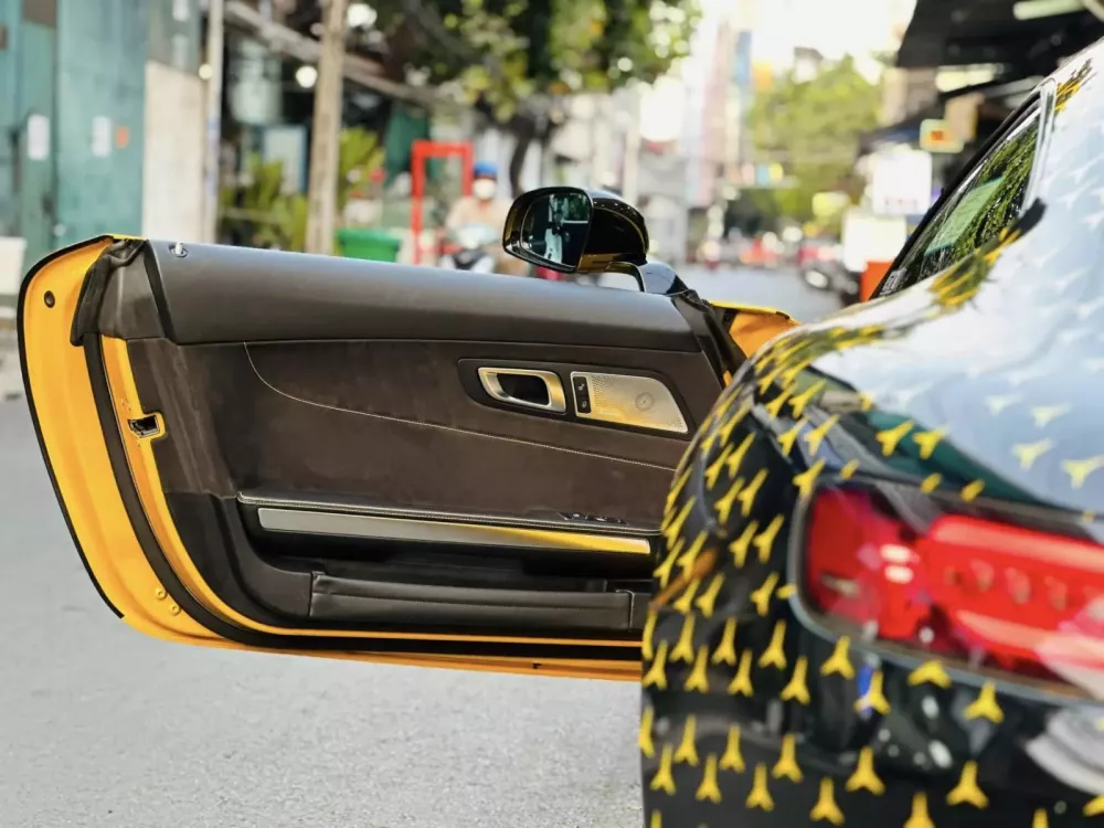 Điểm hấp dẫn của chiếc xe Mercedes-AMG GT S mới được rao bán chính là ngoại thất xe đã được phối lại 2 màu là vàng và đen, trong đó, nửa thân sau dán màu đen cùng các ngôi sao 3 cánh màu vàng tạo điểm nhấn rất bắt mắt.