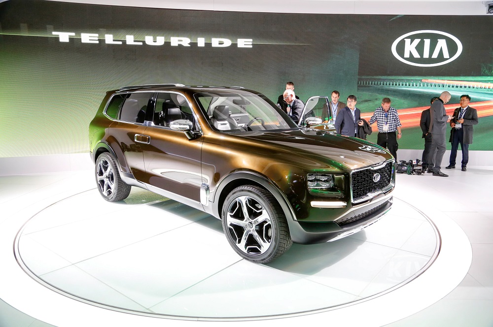 Kia Telluride trên thực tế đã từng ra mắt lần đầu tiên trong triển lãm Detroit cách đây 2 năm. Kia Telluride vốn được phát triển dựa trên cơ sở gầm bệ của Sorento nhưng cao hơn 111 mm, rộng hơn 120 mm và dài hơn 241 mm.