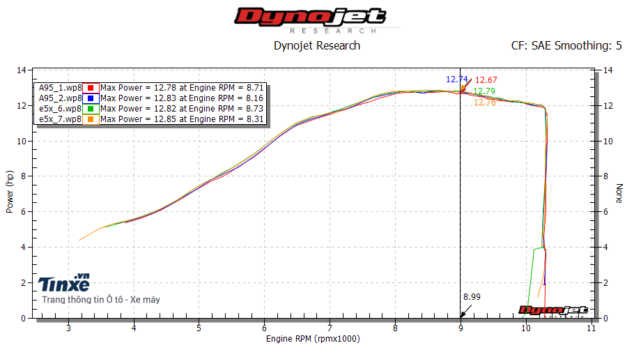 Dựa vào kết quả từ máy đo Dyno Jet 250, có thể dễ dàng nhận thấy trên chiếc xe Honda Winner 150 với hai loại nhiên liệu E5 và A95 đều cho công suất khá tương đồng ở khoảng từ 12,78-12,85 mã lực. Với những con số này thì một người lái xe thông thường sẽ rất khó nhận ra sự khác biệt về sức mạnh của một chiếc xe khi sử dụng xăng E5 hay xăng A95.