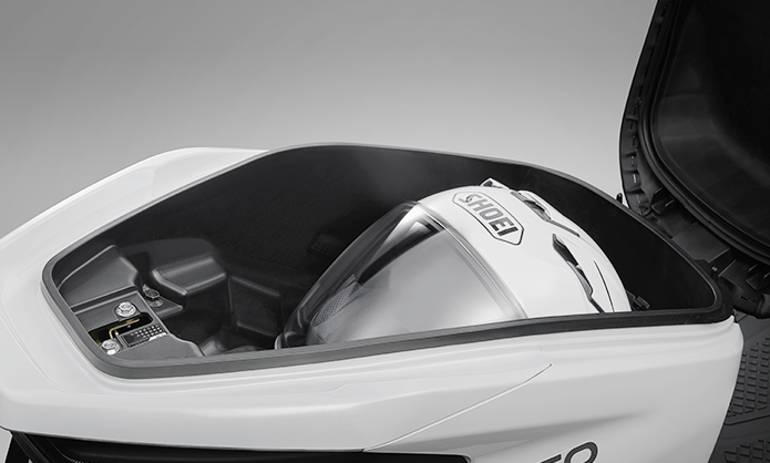 Tổng thể xe mang ngoại hình như một chiếc xe ga nhỏ gọn với thiết kế hai chỗ ngồi, sàn để chân rộng rãi, tay lái bố trí hợp lý tạo nên tư thế ngồi thoải mái. Trang bị của xe khá cơ bản với hệ thống chiếu sáng gồm đèn pha, đèn định vị, đèn xinhan và đèn phanh đều ứng dụng công nghệ LED. Đồng hồ của xe là màn hình LCD dạng âm âm bản cho khả năng hiển thị sắc nét. Bên dưới yên xe là cốp chứa đồ khá rộng với dung tích 26 lít, có khả năng chứa đủ mũ bảo hiểm full-face.